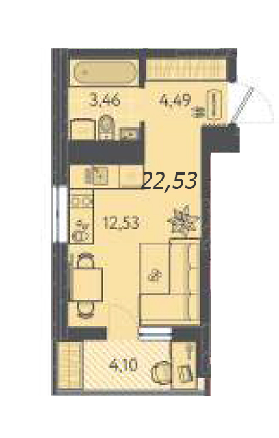 | студия | 22.53 / 12.53 м² | от 3 604 800 руб. (160 000 руб./м²) | Планировка | |