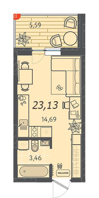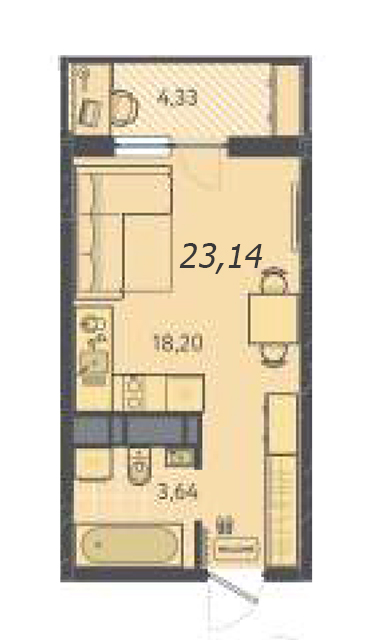 | студия | 23.14 / 18.20 м² | от 3 285 880 руб. (142 000 руб./м²) | Планировка | |