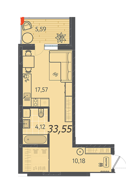 | студия | 33.55 / 17.57 м² | от 5 133 150 руб. (153 000 руб./м²) | Планировка | |