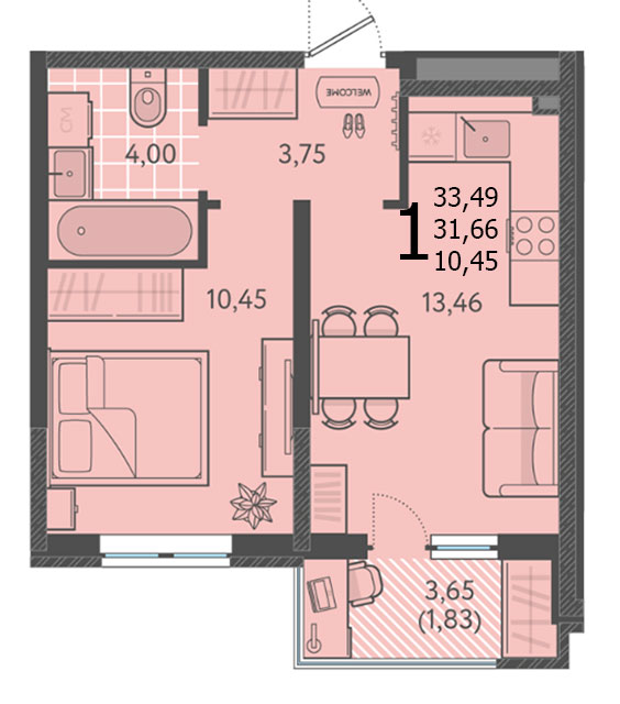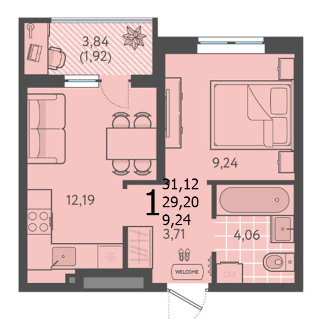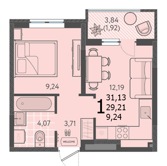 | 1 | 31.13 / 9.24 м² | от 4 109 160 руб. (132 000 руб./м²) | Планировка | |