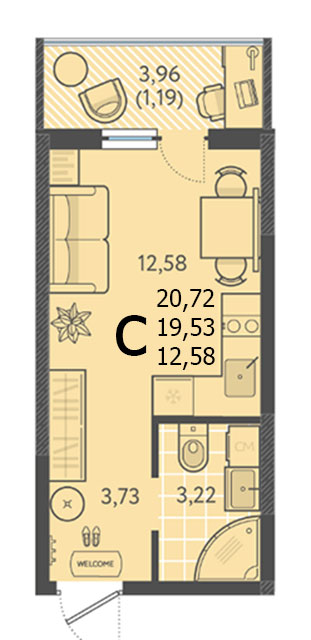 | студия | 20.72 / 12.58 м² | от 2 942 240 руб. (142 000 руб./м²) | Планировка | |