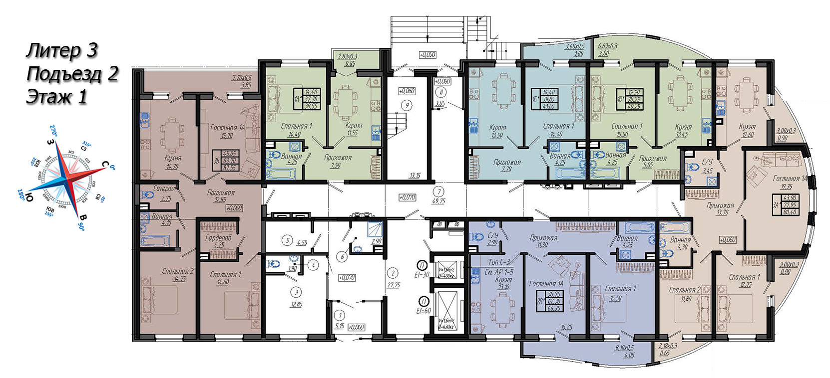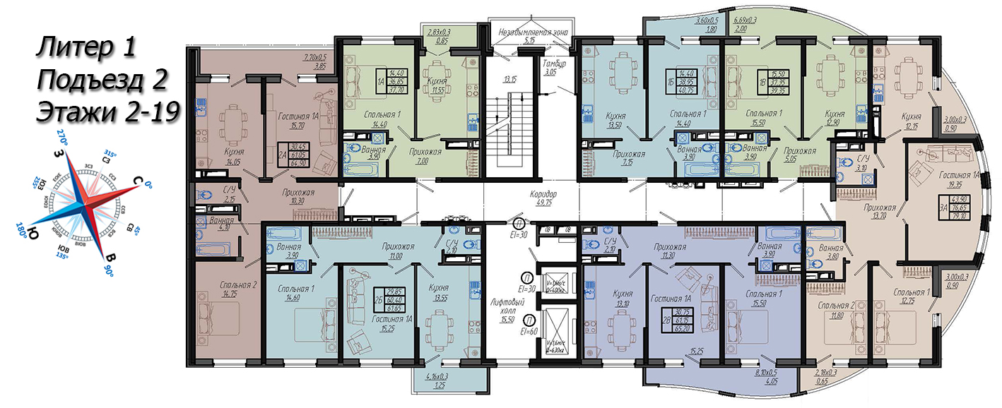 В ЖК не предусмотрены коммерческие помещения, поэтому квартиры на 1 этаже будут интересны предпринимателям.