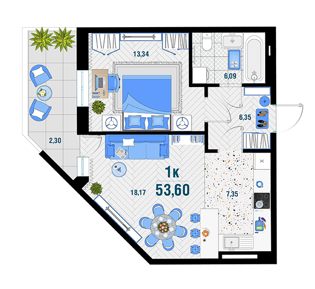 | 1 | 53.6 / 31.51 м² | от 6 919 760 руб. (129 100 руб./м²) | Планировка | |