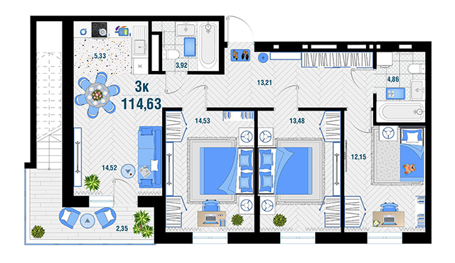 | 3 | 115.86 / 40.16 м² | от 15 200 832 руб. (131 200 руб./м²) | Планировка | |