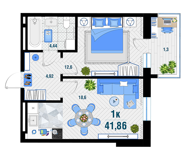 | 1 | 41.88 / 12.6 м² | от 5 708 244 руб. (136 300 руб./м²) | Планировка | |