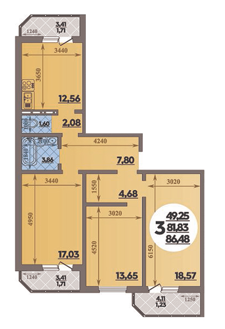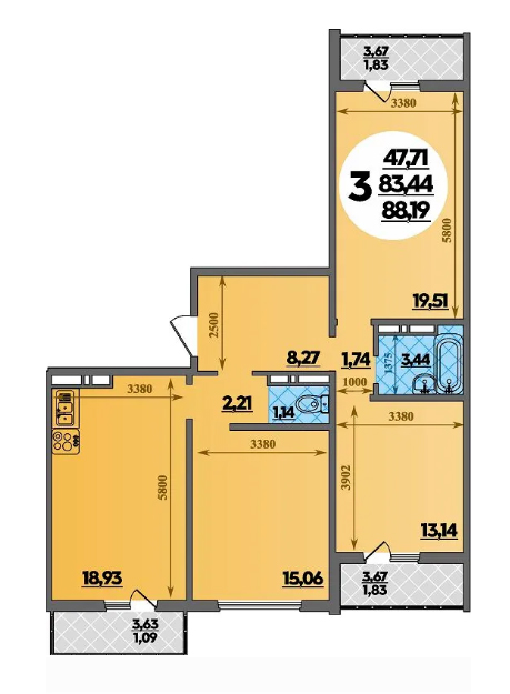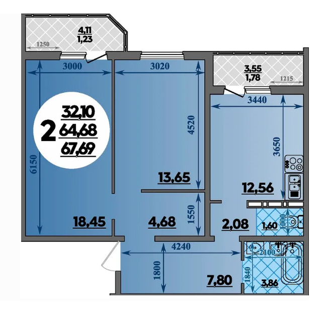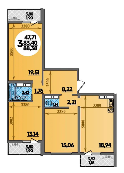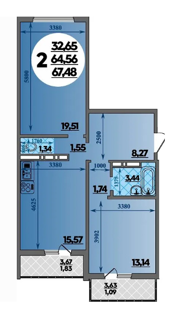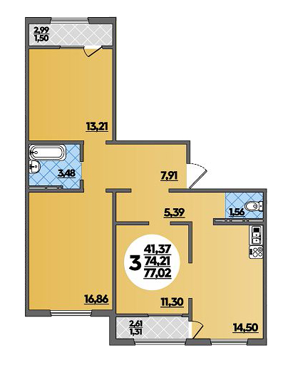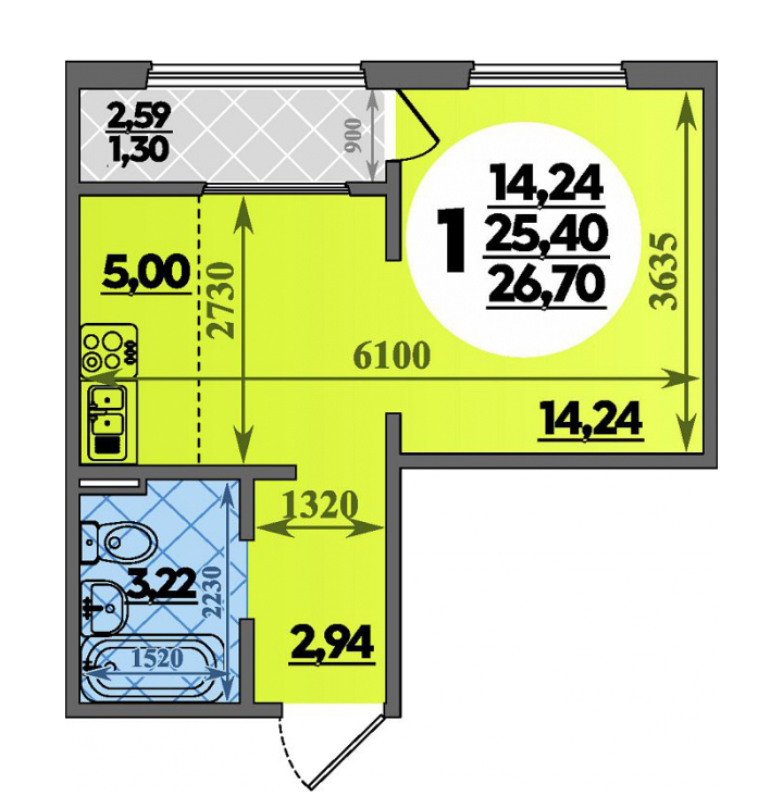 Общая площадь помещений в ЖК «Восточно-Кругликовский» варьируется от 25,2 до 83 кв. м., высота потолков – 2,7 метра.