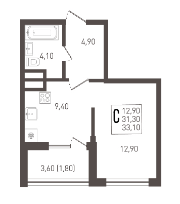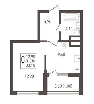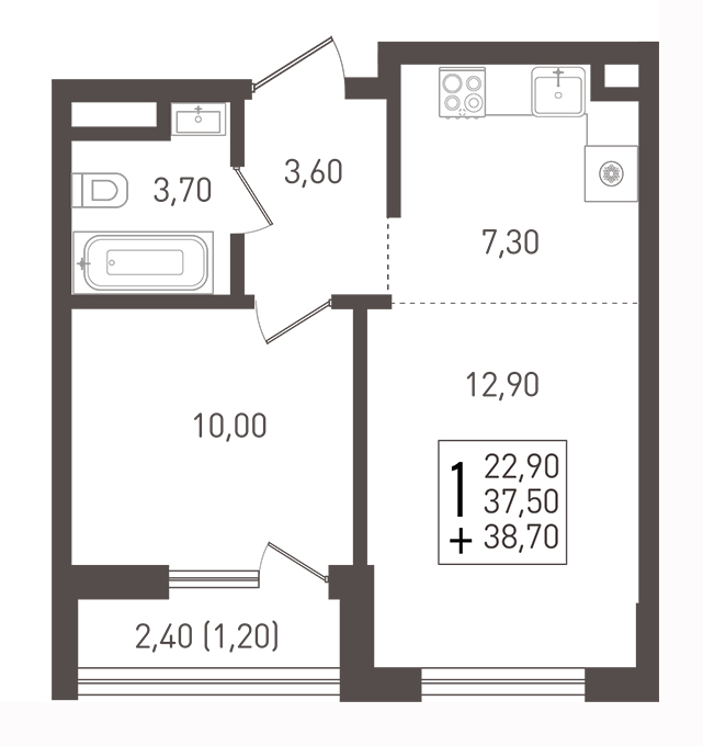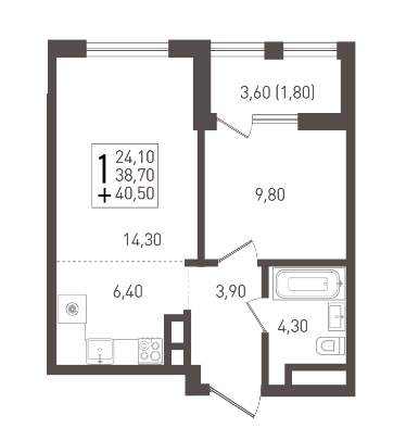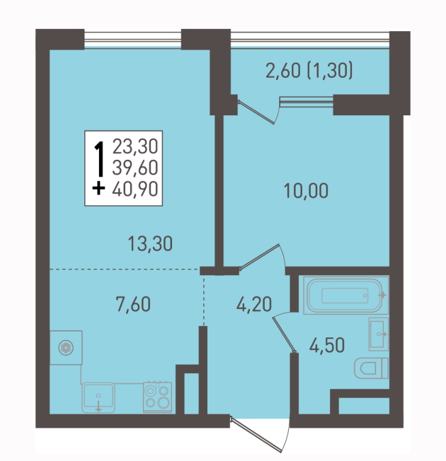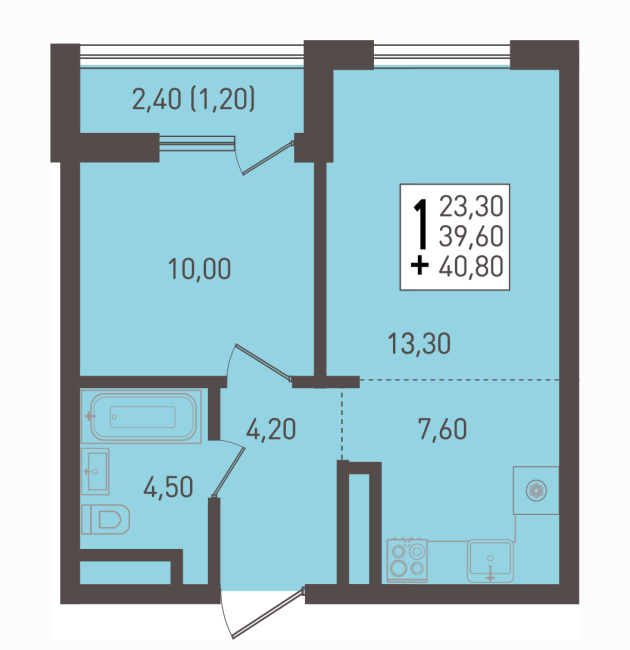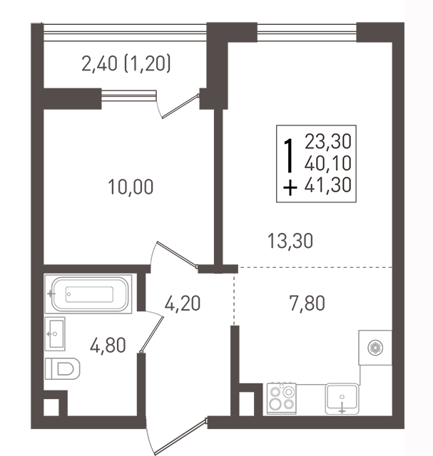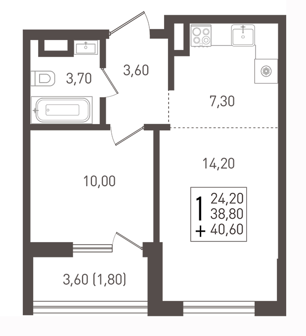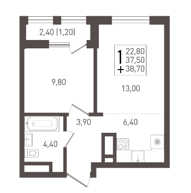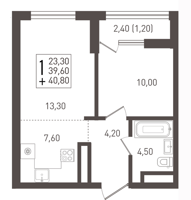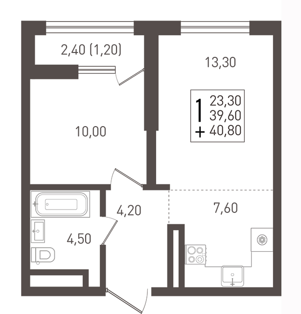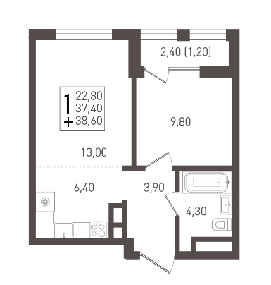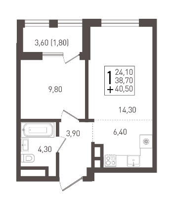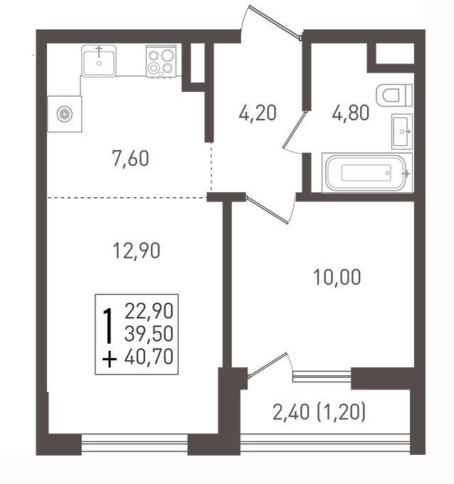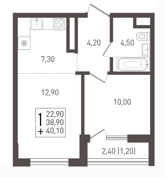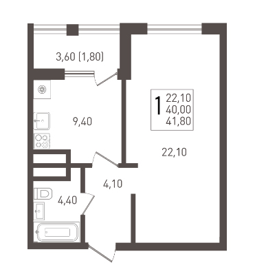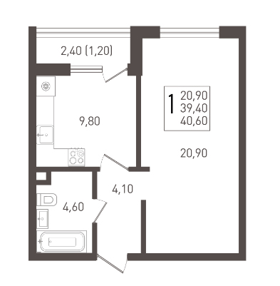 | 1 | 40.6 / 22.9 м² | от 5 537 840 руб. (136 400 руб./м²) | Планировка | |