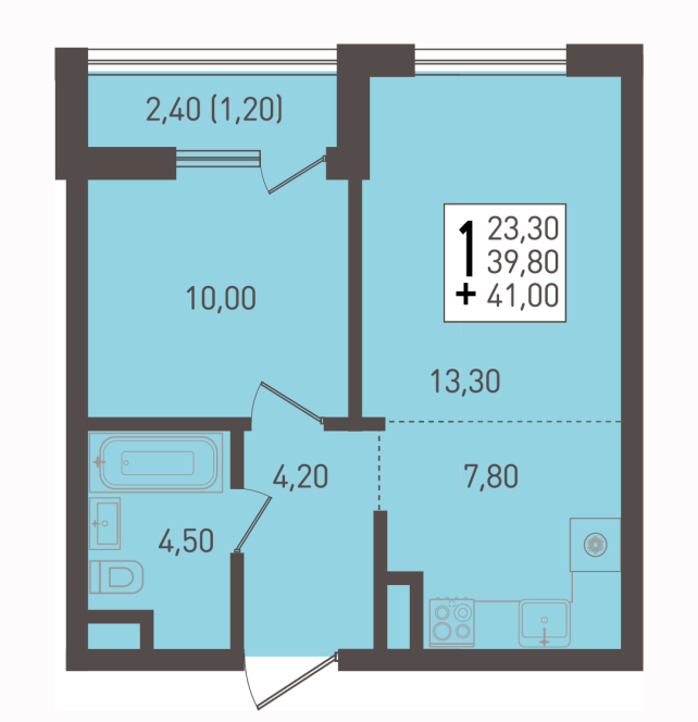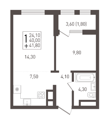| 1 | 41.8 / 24.1 м² | от 5 701 520 руб. (136 400 руб./м²) | Планировка | |