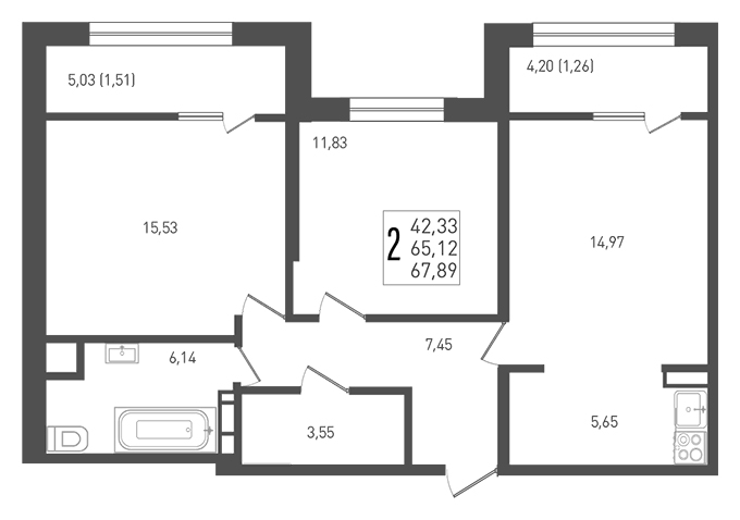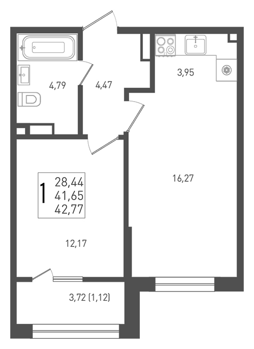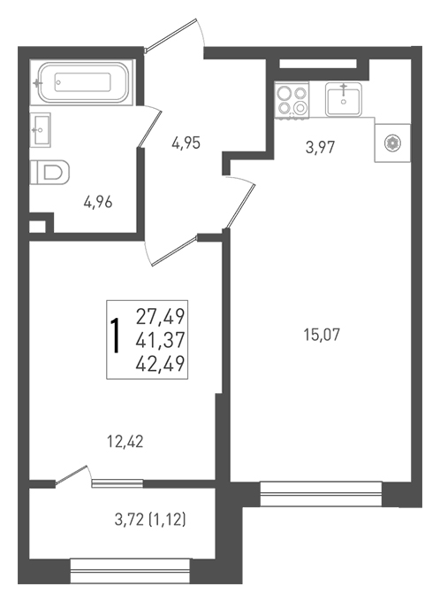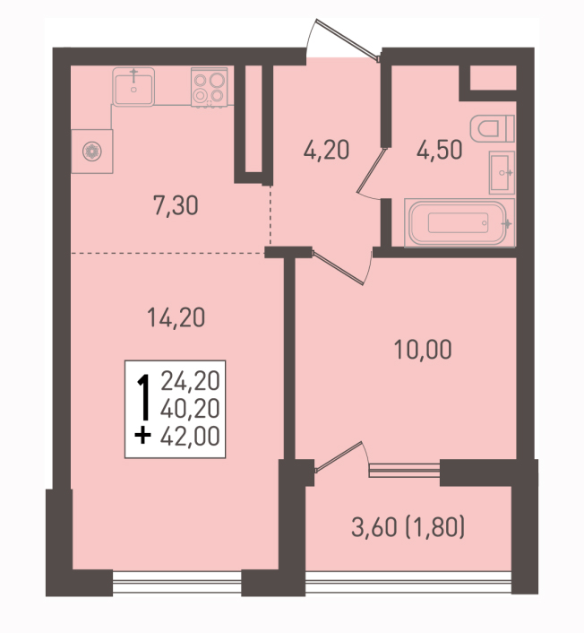 | 1 | 42 / 24.2 м² | от 5 728 800 руб. (136 400 руб./м²) | Планировка | |