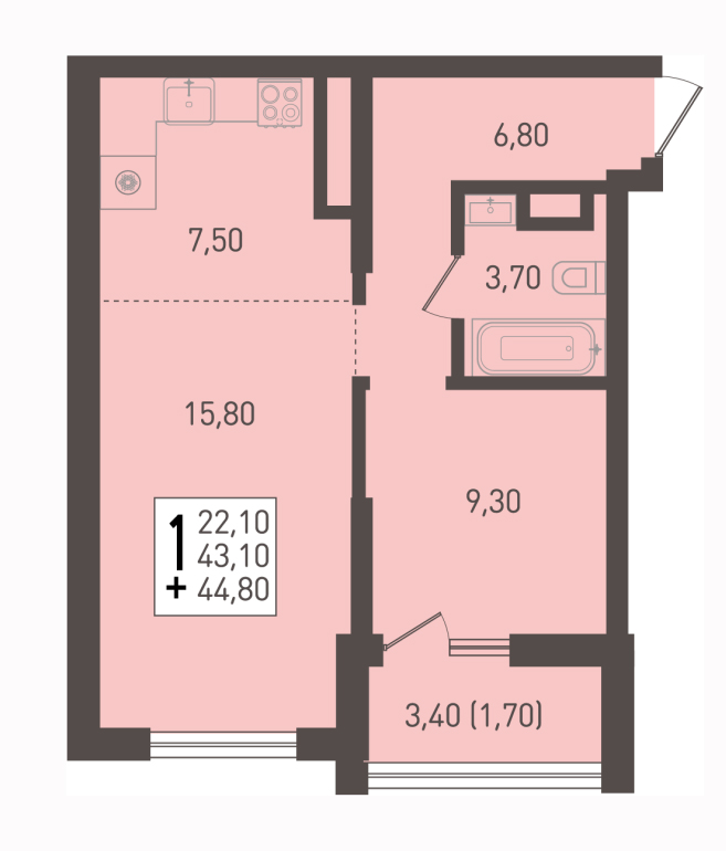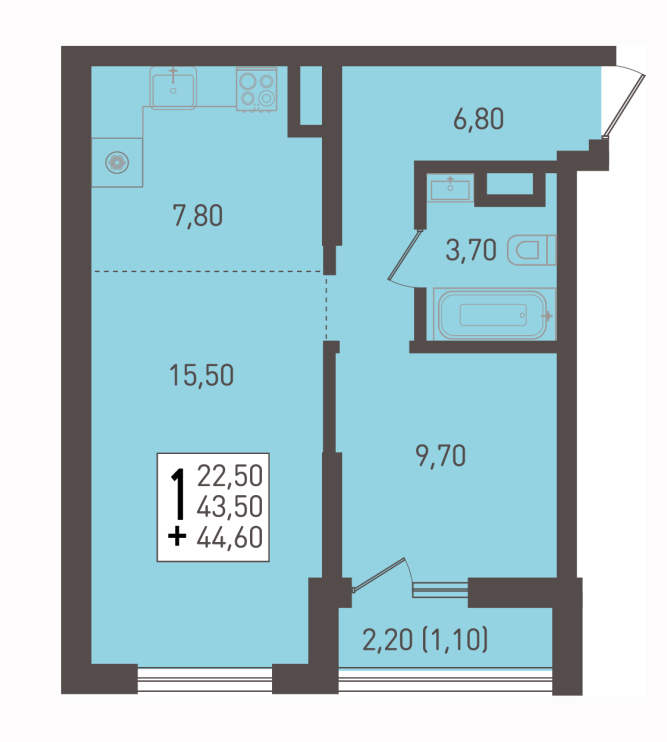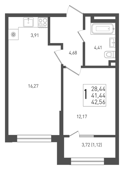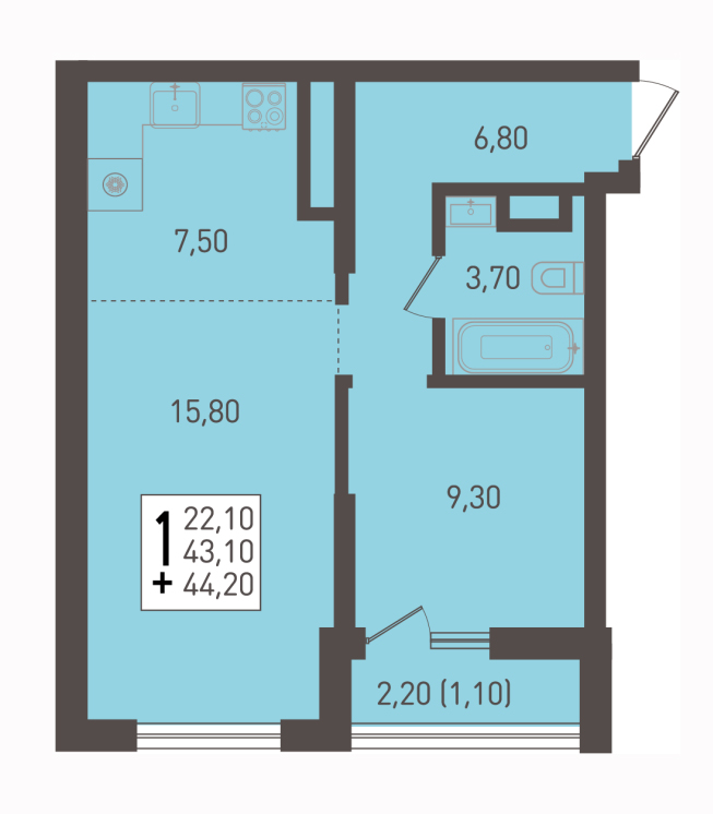 | 1 | 44.2 / 22.1 м² | от 6 028 880 руб. (136 400 руб./м²) | Планировка | |