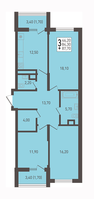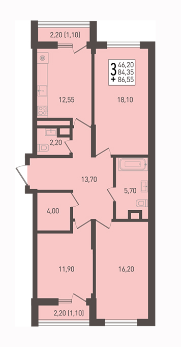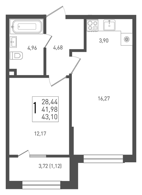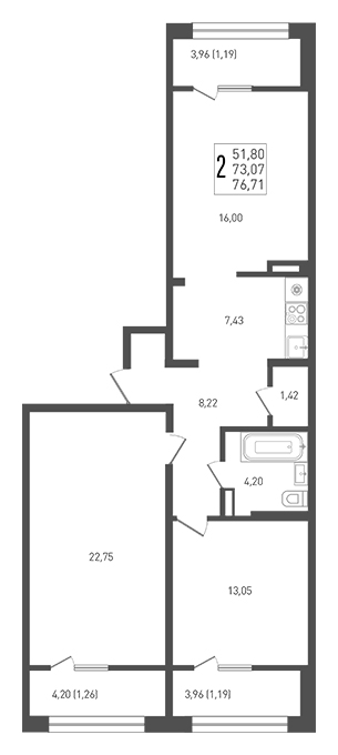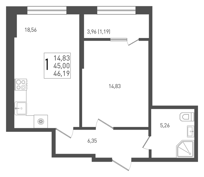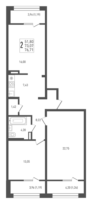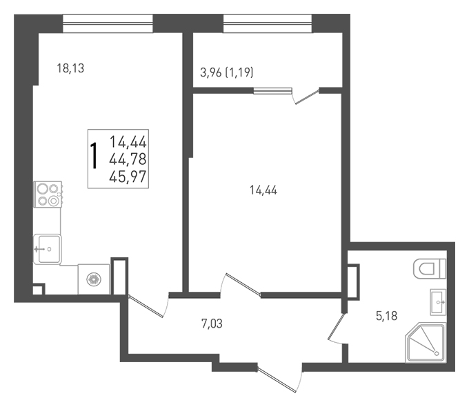 | 1 | 46.19 / 14.44 м² | от 6 392 696 руб. (138 400 руб./м²) | Планировка | |
