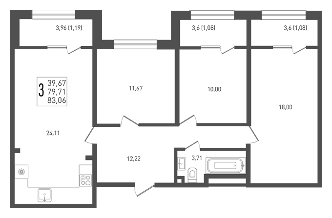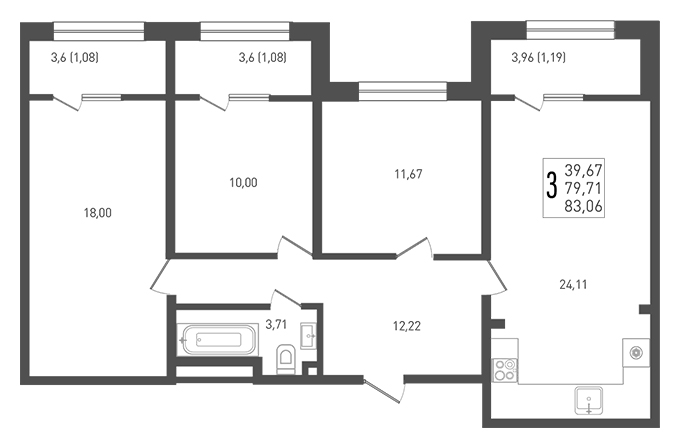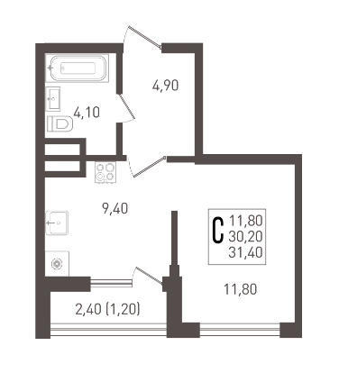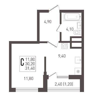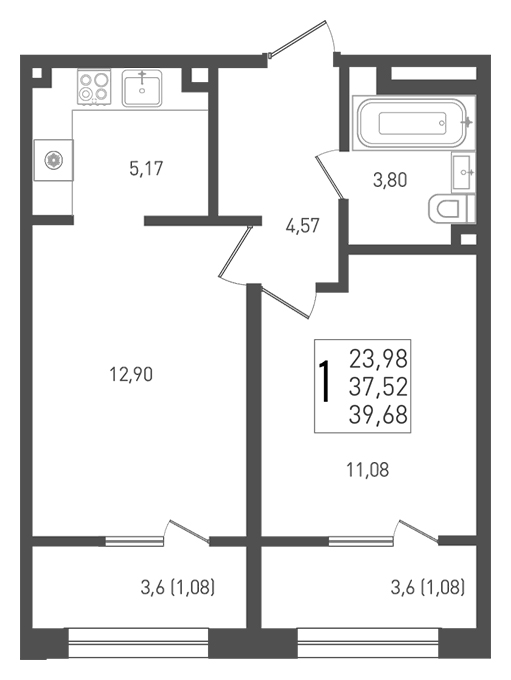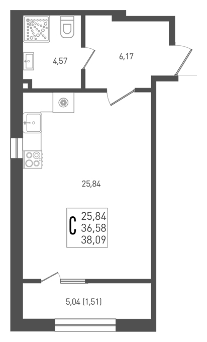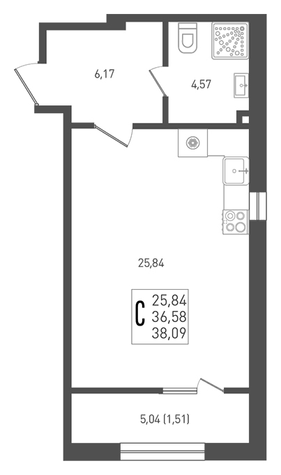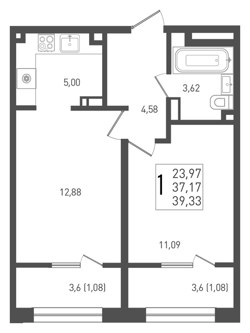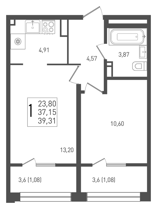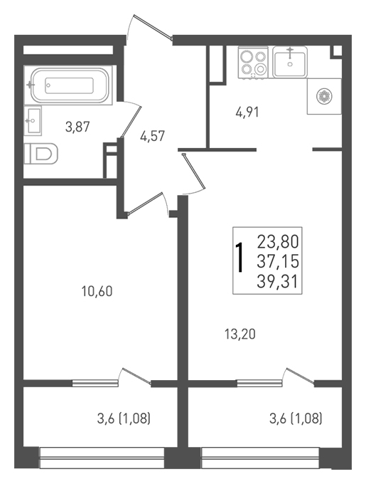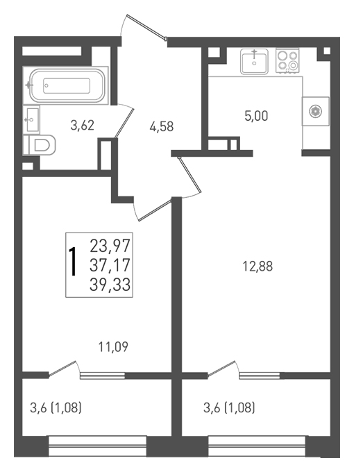 | 1 | 39.31 / 23.8 м² | от 5 440 504 руб. (138 400 руб./м²) | Планировка | |