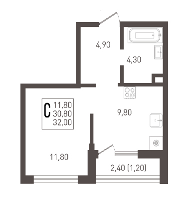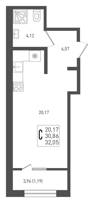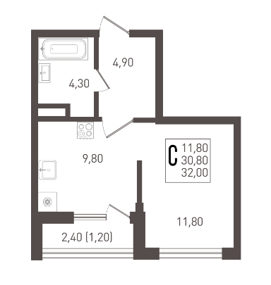 | студия | 32.0 / 11.8 м² | от 4 928 000 руб. (154 000 руб./м²) | Планировка | |