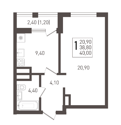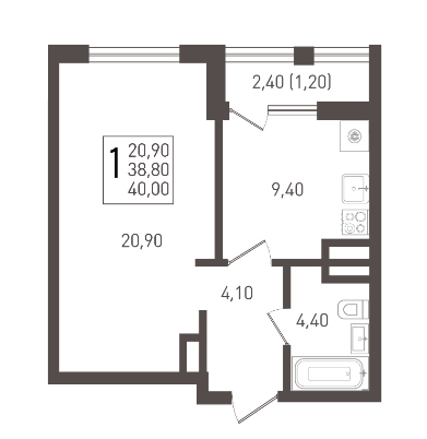 | 1 | 40 / 20.9 м² | от 5 456 000 руб. (136 400 руб./м²) | Планировка | |