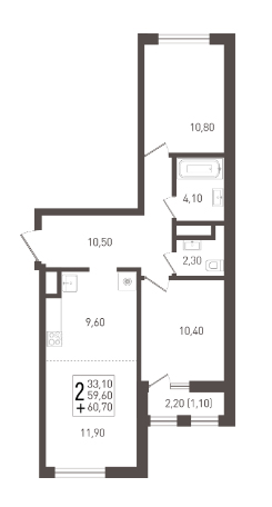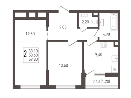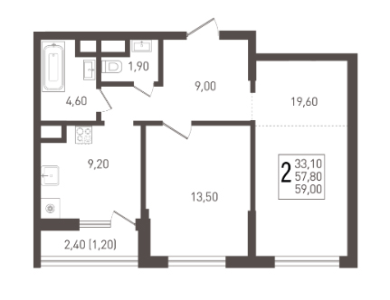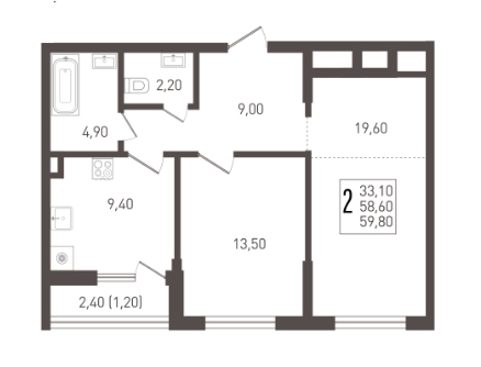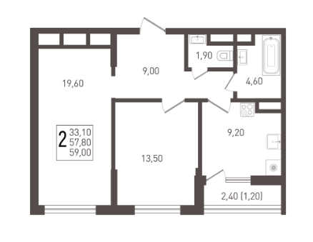 | 2 | 59 / 33.1 м² | от 7 516 600 руб. (127 400 руб./м²) | Планировка | |