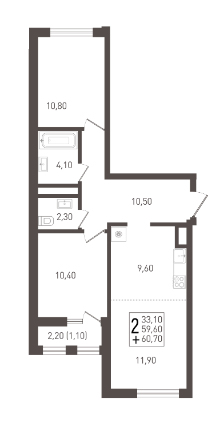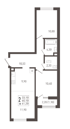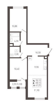 | 2 | 61.2 / 33.1 м² | от 7 796 880 руб. (127 400 руб./м²) | Планировка | |