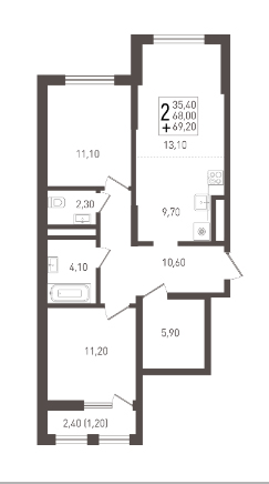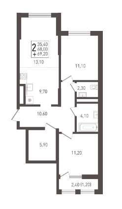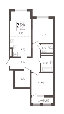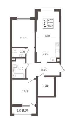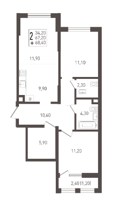 | 2 | 68 / 34.2 м² | от 8 663 200 руб. (127 400 руб./м²) | Планировка |