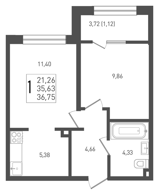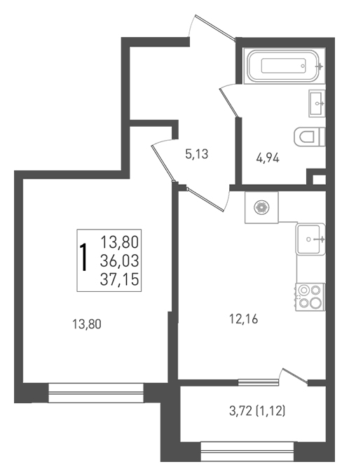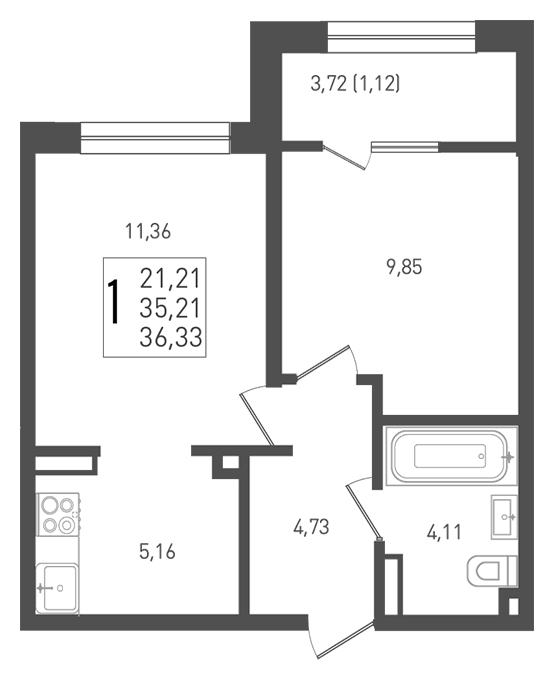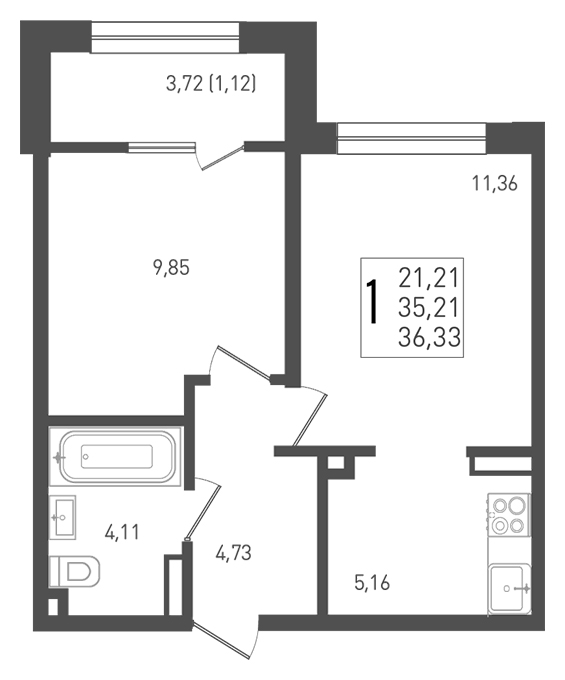 | 1 | 36.33 / 21.21 м² | от 5 028 072 руб. (138 400 руб./м²) | Планировка | |