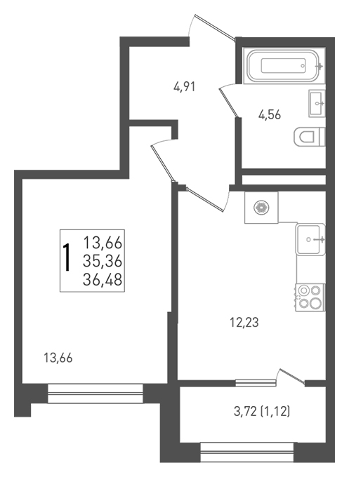 | 1 | 36.48 / 13.66 м² | от 5 048 832 руб. (138 400 руб./м²) | Планировка | |