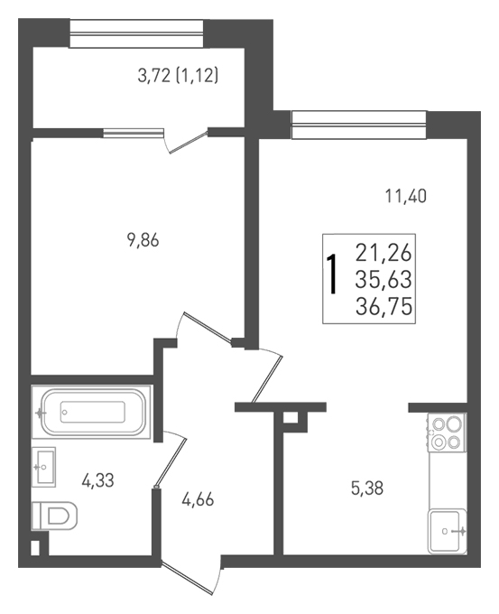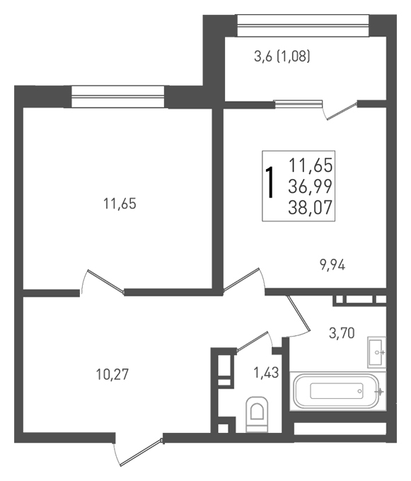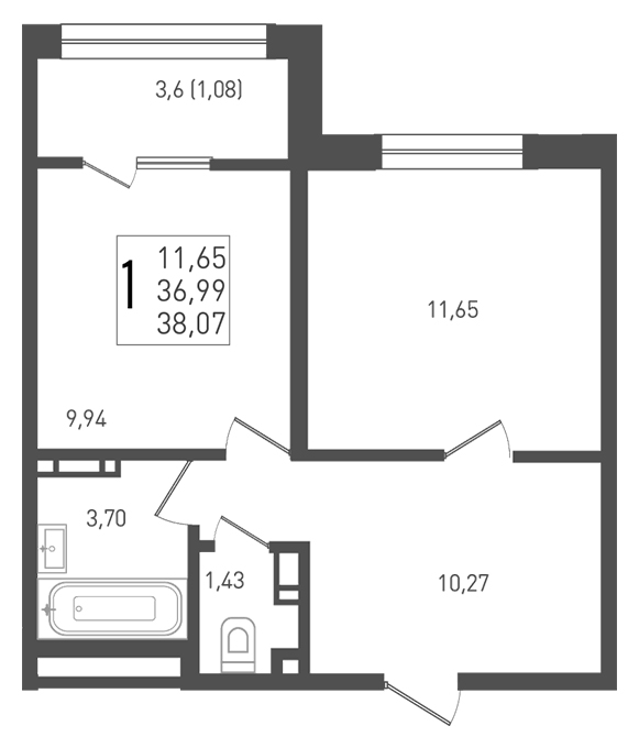 | 1 | 38.07 / 11.65 м² | от 5 268 888 руб. (138 400 руб./м²) | Планировка | |