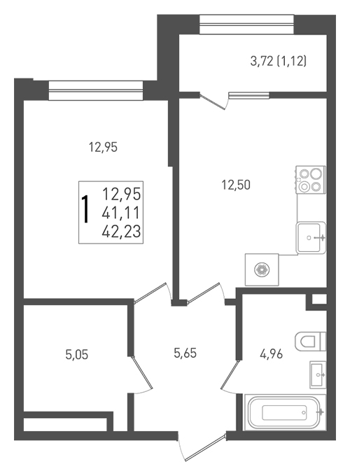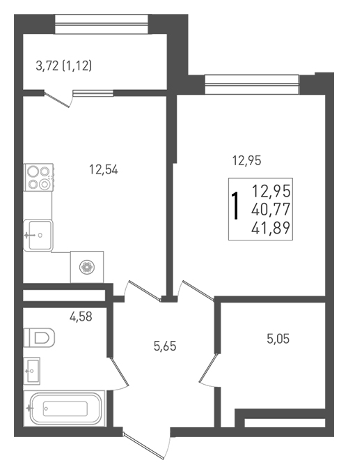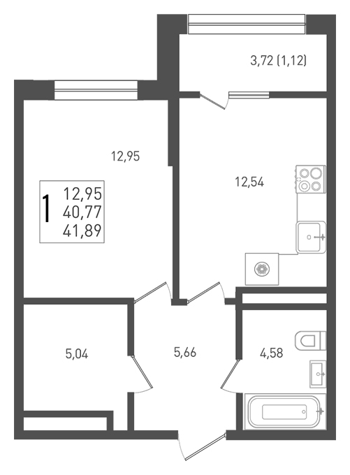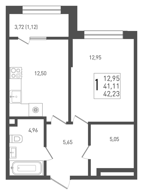 | 1 | 41.89 / 12.95 м² | от 5 797 576 руб. (138 400 руб./м²) | Планировка | |