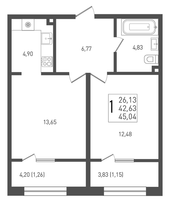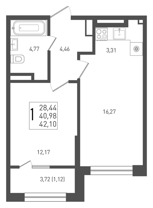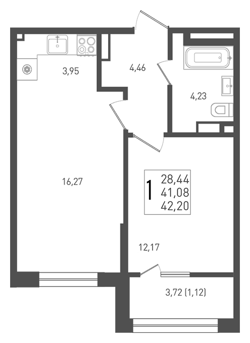 | 1 | 42.1 / 28.44 м² | от 5 826 640 руб. (138 400 руб./м²) | Планировка | |
