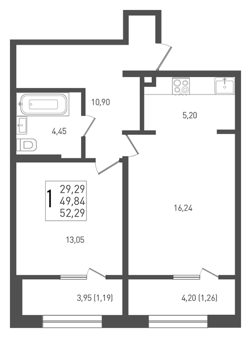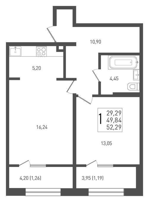 | 1 | 52.29 / 29.29 м² | от 7 236 936 руб. (138 400 руб./м²) | Планировка | |