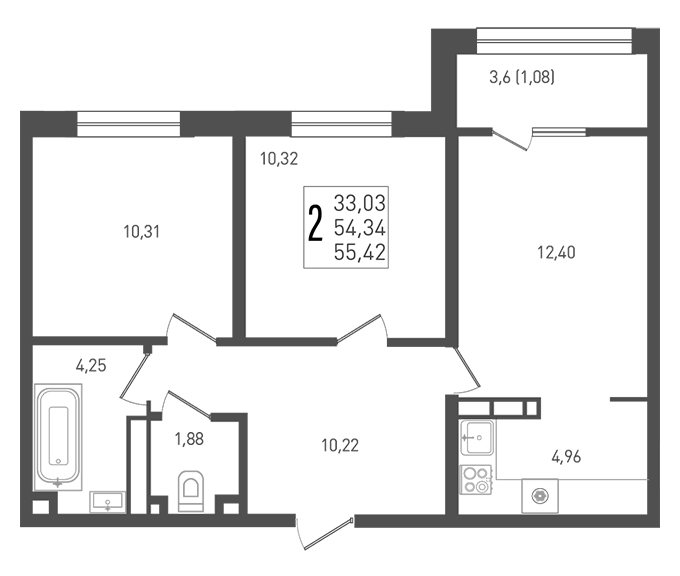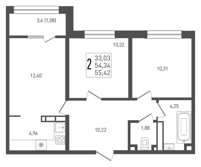 | 2 | 55.42 / 33.03 м² | от 6 949 668 руб. (125 400 руб./м²) | Планировка |