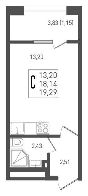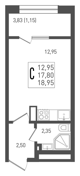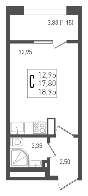 | студия | 18.95 / 12.95 м² | от 2 982 730 руб. (157 400 руб./м²) | Планировка | |
