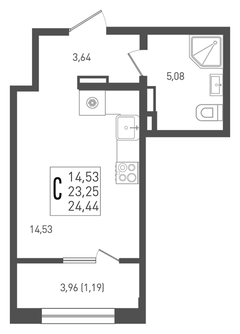 | студия | 24.16 / 14.53 м² | от 3 802 784 руб. (157 400 руб./м²) | Планировка | |