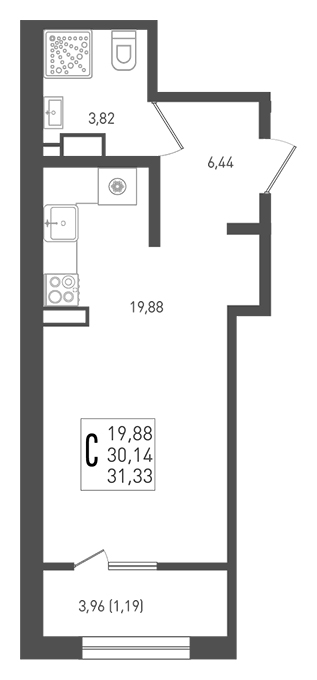 | студия | 31.33 / 19.88 м² | от 4 931 342 руб. (157 400 руб./м²) | Планировка | |
