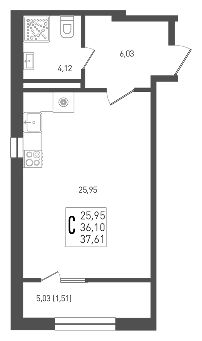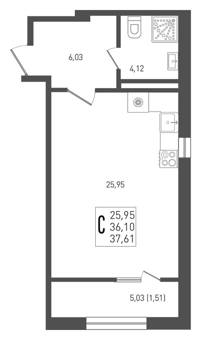 | студия | 37.61 / 25.95 м² | от 5 919 814 руб. (157 400 руб./м²) | Планировка | |