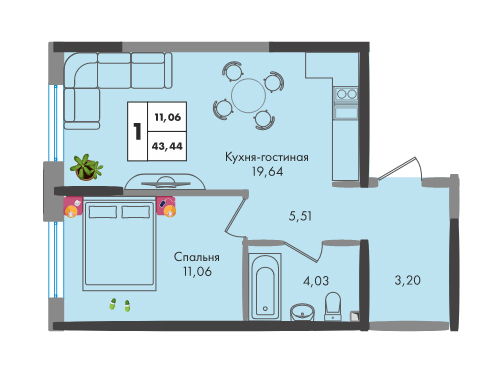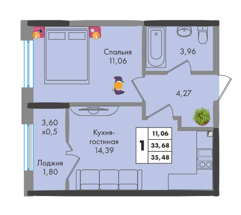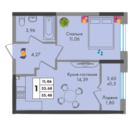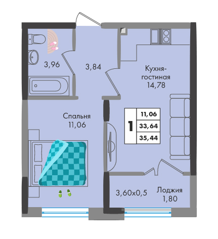 1 35.44 / 11.06 м² от 5 103 360 руб. (144 000 руб./м²) Планировка