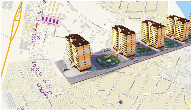 1. ЖК «Молодежный» – небольшой микрорайон из десятков домов в посёлке городского типа Яблоновский;